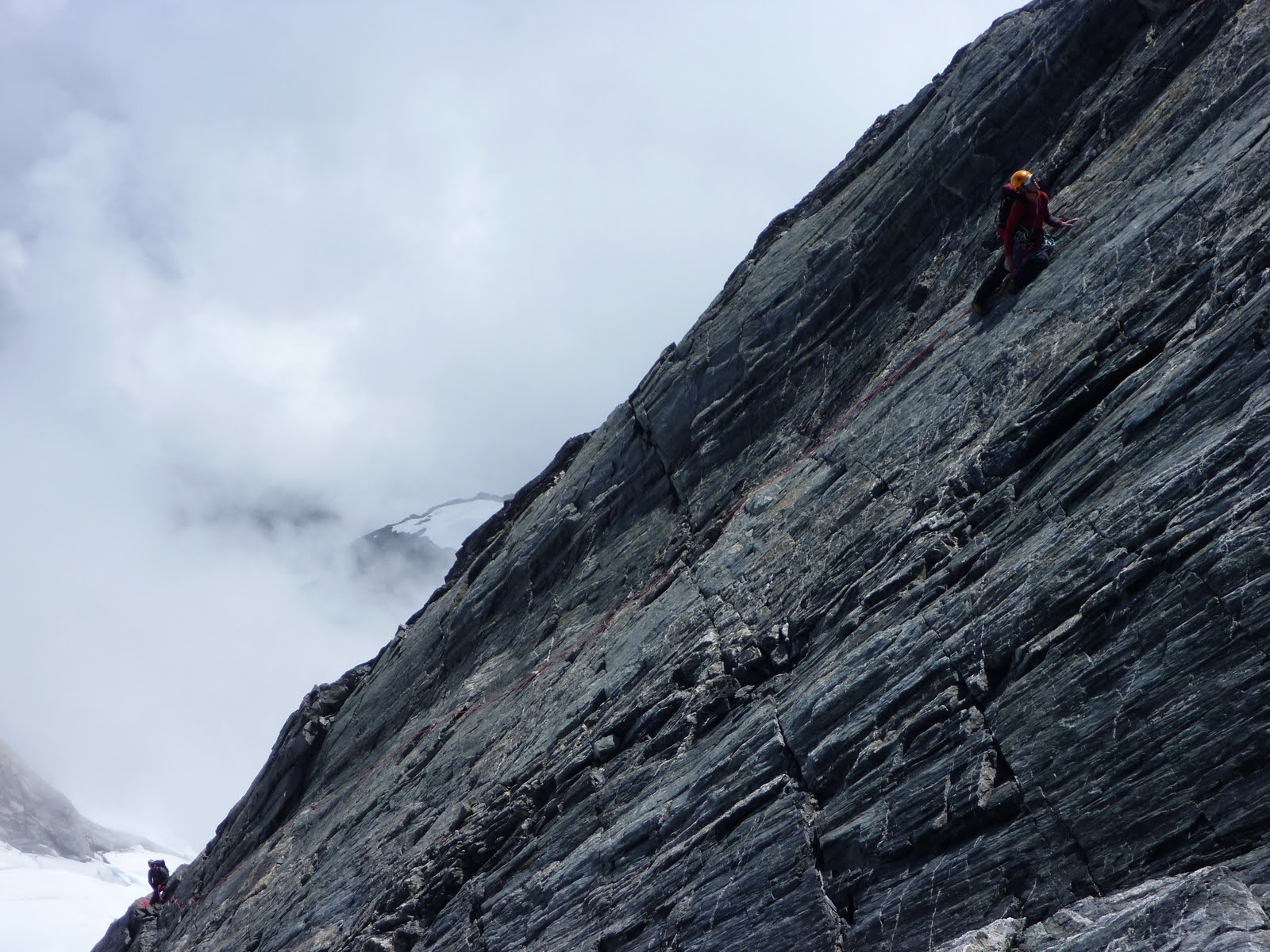 Rock fall in the mountains sounds like gunshot. There’s a whirring as each projectile flies by, and then a crack when it ricochets off the cliff I am clinging to. It’s easy to imagine that this is what coming under enemy fire must be like, a sickening feeling.