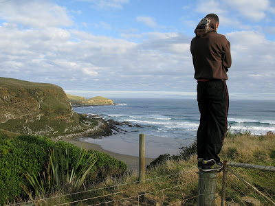 I wake around dawn to the high pitch of a dog yipping somewhere. It ignores my attempt at mental ‘shut the f__k up’ telepathy. The sky is still overcast, and flat sepia-toned light filters through the window. Outside, the dark, sabre-shaped leaves of cabbage trees rustle with the wind in what looks like the right direction. As Warren predicted, the wind has swung offshore. ‘No rush, the banks need more water,’ he says when I wander out into the kitchen in search of Joe. The young guys Luke and Tom don’t care. They’re busy wolfing Weet Bix and bread rolls like alley cats, smiling at each other like they’re privy to some personal joke. Thirty-something’s Jay and Al take their time while Jonny’s still upstairs, sucking paint off the ceiling. After a second coffee and decent portion of Warren’s fry up, I settle for a wander along the sickle-shaped bay. The wind still has a wintery bite to it, reminding me that nothing but a few paltry islets separate this coast from the Antarctic. Apart from a couple of bored-looking seagulls and a lone oyster-catcher ferreting in the shallows, the beach is deserted. In summer, the nearby camping ground proves justifiably popular with eco-tourists, although occasionally visitors get closer to nature than intended. I remember reading in some newspaper that the local Department of Conservation staff resorted to placing stuffed beanbags shaped as sea lions along the shore. Apparently, horny juvenile male sea lions were bursting into tents and terrorising unsuspecting campers. But the article reported that tourists were the only ones being fooled by the beanbags, giving them a wide berth when going for a stroll along the beach. The leftfield beanbag idea doesn’t surprise me. I’ve surfed here a few times in the past, and always found the locals a funny, quirky bunch. By mid tide, the line-up in front of our accommodation is working nicely. Although Al’s complaining about a lack of size, he still manages to revel in the perky, head-high A-frames, slugging any unsuspecting lips and causing facial mayhem. Warren lurks in the sand dunes with his long lens, occasionally doing the sand fly shuffle when the little beggars breach his armoury of clothing.