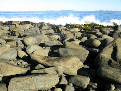 Al and Jonny, riding standard shortboard thrusters, position themselves for the outside bombs while Luke and Tom hug the inside racers with Mister Simmons and Mister Bonzer. Jay and I hover in the middle, jack-of-all-trades like, Jay on one of his quad-fin creations and me on a Roger Hall twin keel fish. The sets keep coming.