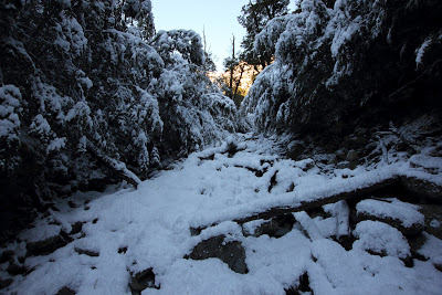 Conditions were pretty cold, so we returned to our tent, hoping a solid overnight freeze might eventuate. But slogging in the dark through the snow the next morning, back up to the ice, we realized that it felt like the air was warmer.